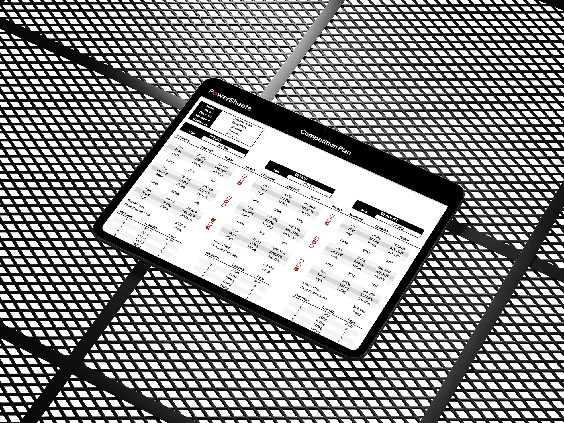 Peaking blocks, attempt & warmup selection, weight cuts... all managed in one place.